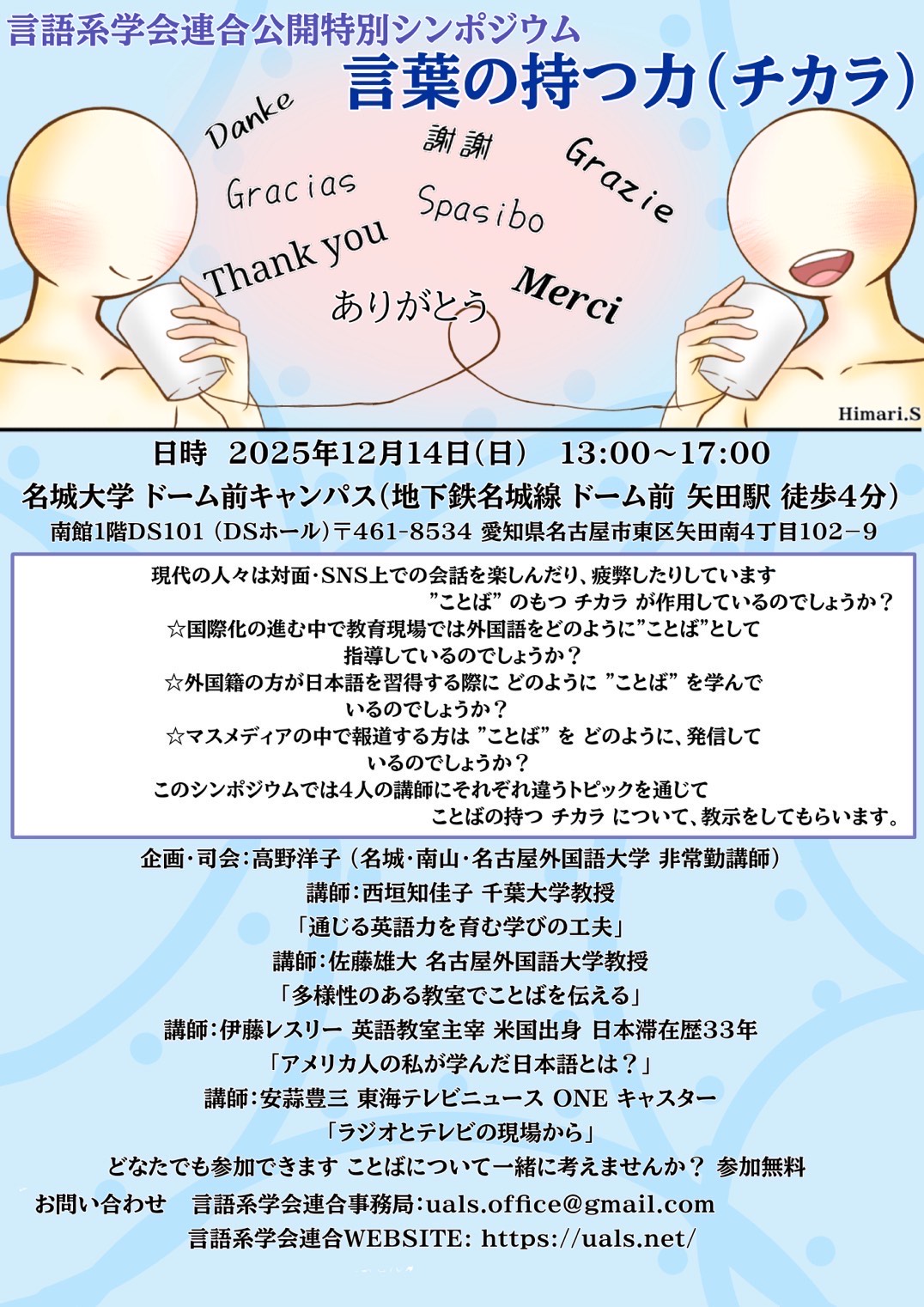 言語系学会連合2025年度公開シンポジウム(12月14日開催)のご案内